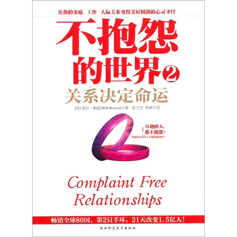 - 答:1. 这本书被认为仅次于《圣经》,它有潜力彻底改变你的生活。美国心灵导师威尔·鲍温的《不抱怨的世界》就是这样的书。2006年,他发起了“21天不抱怨”的“紫手环”运动,吸引了数百万参与者,并影响了他们的人生。2010年,《不抱怨的世界》出版,如今它已在全球范围内畅销,启发了越来越多的人。2. 【紫手环的使用规