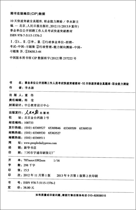 霍兰德职业倾向测试题及答案 答:缺乏社交能力,通常喜欢独立做事。 10道挽回测试题:测你们的复合机会大不大 性格特点:感觉迟钝、不讲究、谦逊的。踏实稳重、诚实可靠。 职业建议:喜欢使用工具、机器,需要基本操作技能的工作。要求具备机械方面才能、体力、或从事与物件、机器、工具、运动器材、植物、动物相关的职业有兴趣,并具备相应能力。 如:技 事业单位考试的“职业能力测试”指的是什么,怎么准备? 答:教材:如中公职测A教材,是基础知识学习的必备资料。特训营:如花果事考职测特训营,提供职业能力倾向测验的深入讲解。题库:如中公职测考前必做题库,用于练习解题技巧。历年真题:用于模拟考试,熟悉考试形式和难度。四、备考建议 按顺序做题:按常识判断、言语理解、资料分析、判断推理和数量关系的顺序做... 行政职业能力测验最新真题汇编及详解基本信息 答:汇集了最新的行政职业能力测验题库,并配有详尽解析。涵盖了行政职业能力测验的所有核心内容,包括逻辑推理、言语理解、数量关系、资料分析等。适用对象:适用于全国各地的考生,具有广泛适用性。对初次备考的考生和寻求进一步提升的在职人员均适用。主编与出版社:主编为李永新,以其丰富的经验和独到的见解精心...