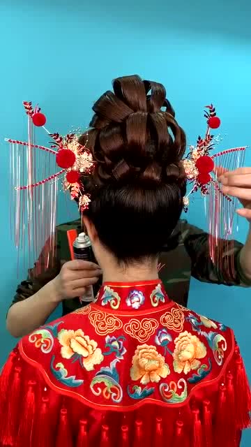 而近年来,不少明星婚礼中也频频出现中式盘发的身影。例如,某位知名女演员就在婚礼当天选择了复古风格的盘发造型,配上精致的点翠头饰,瞬间成为全网热议的话题。这种“明星效应”无疑也推动了中式盘发在大众婚庆市场中的流行。
